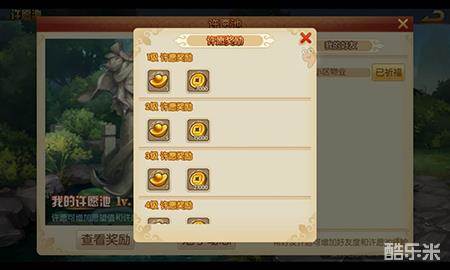 然后在游戏中进入许愿池进行许愿增加许愿池经验后也可以获得铜钱。在许愿池中栖息着许愿之神,你可以在池子中的莲花上进行许愿。许愿之神将会回应你的愿望,帮你实现。