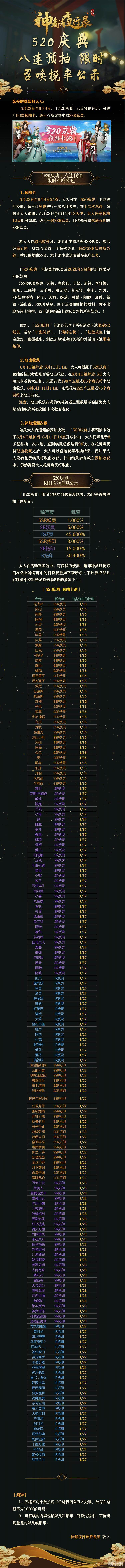 《神都夜行录》【概率公示】520庆典 八连预抽 限时召唤概率公示
