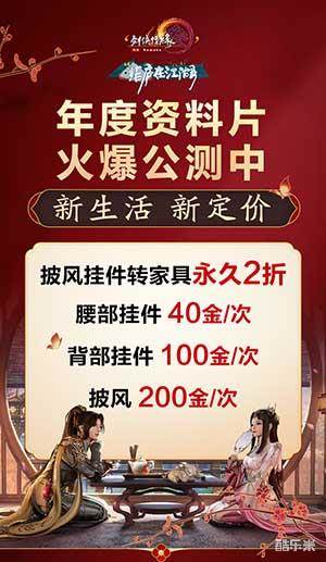 全新生活,全新定价!挂件披风拓印家园家具还将迎来永久大降价,统统打2折!即在今日维护后,每个腰部挂件转换家具仅需消耗40金,背部挂件仅需消耗100金,披风仅需消耗200金,让侠士们能够更好的装饰家园!而已将挂件进行转换的侠士也无需着急,《剑网3》将会返还此前因挂件披风转换家园家具所额外消耗的金币。