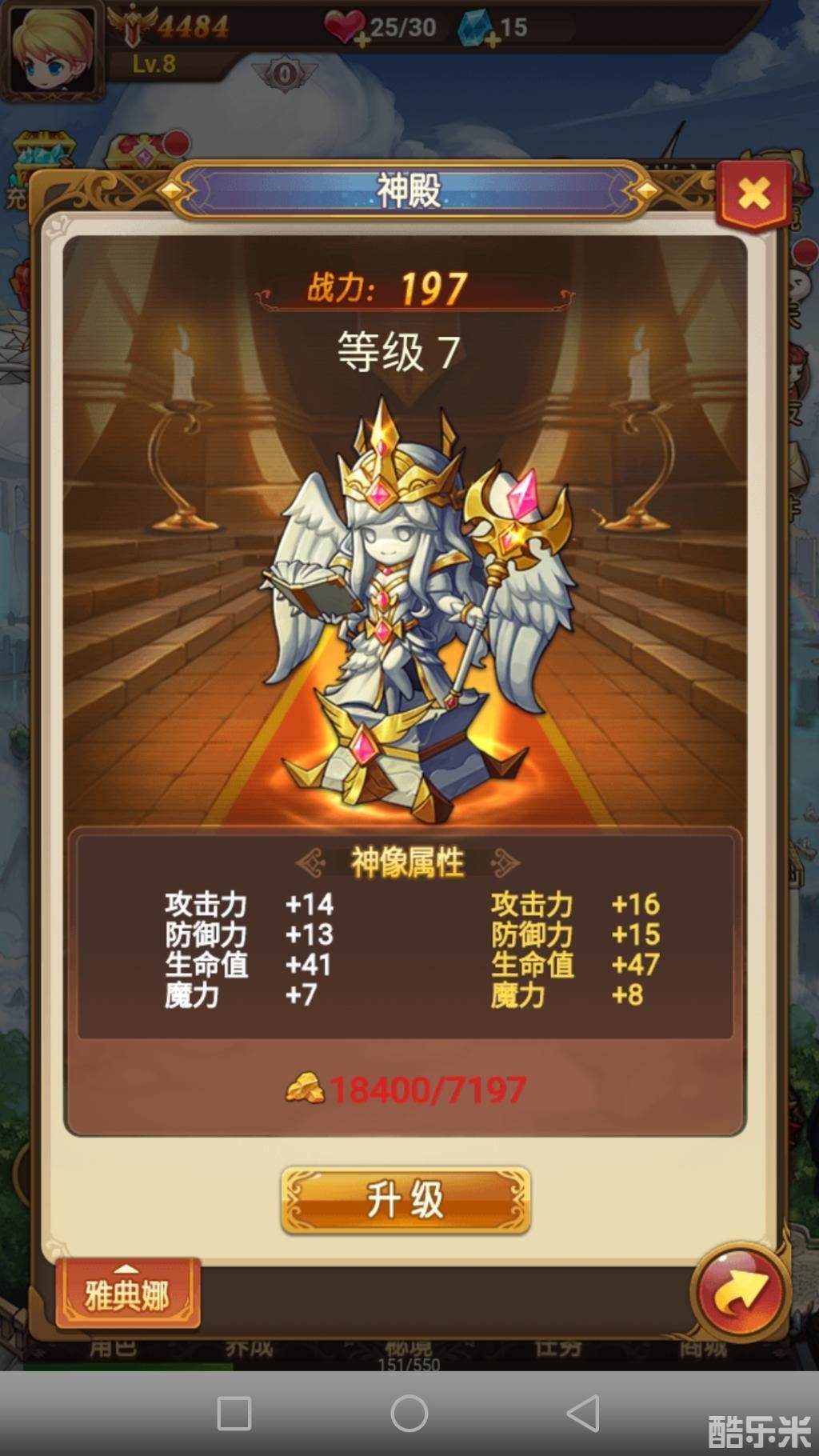 神殿系统是游戏初期必须升级的,这个神殿可以给玩家带来非常大的增益,尤其在游戏初期玩家没有装备的情况下,神殿的作用就非常大了
