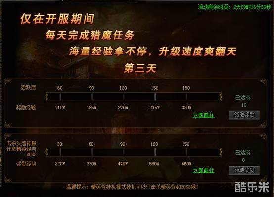 【活动内容】:开服活动期间,完成每日猎魔任务,海量经验拿不停!