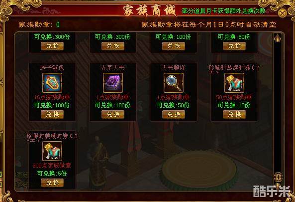 8、家族商城增加7天珍稀时装续时券和30天珍稀时装续时券。(感谢热心玩家提供建议)