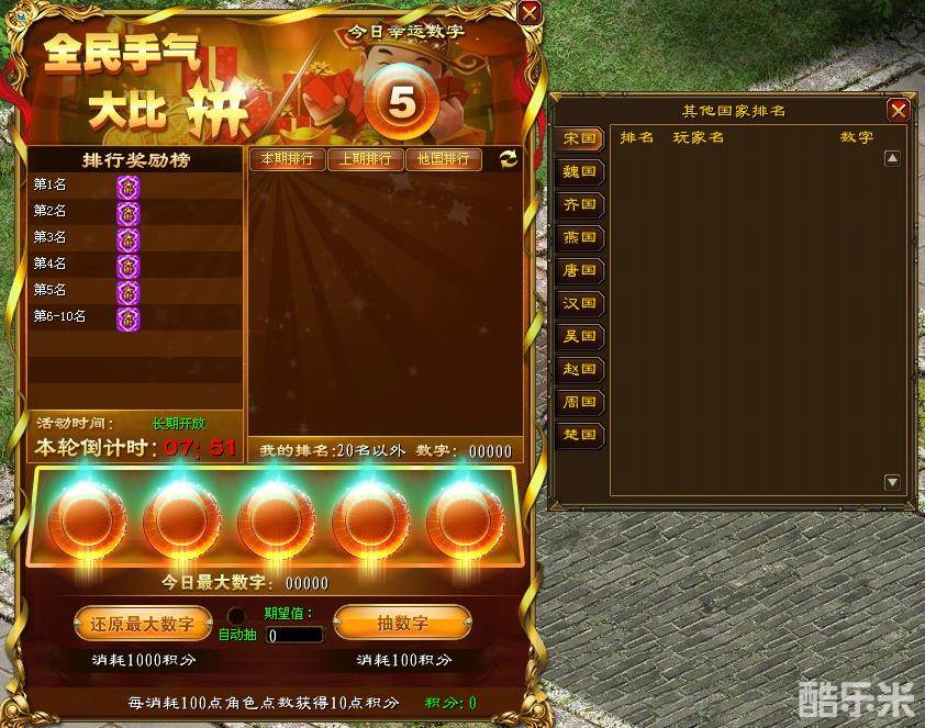 手气比拼活动优化,本区排行调整为本国排行,每个国家前10名的玩家均可获得奖励,且奖励大幅度提升。玩家如果移民将清除当日抽取的数字记录。