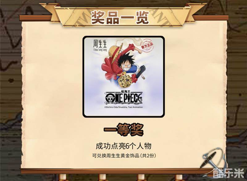 作为寻宝活动,当然要有真正的“宝藏”作为压轴啦!本次《航海王启航》五周年活动,将提供官方授权的周生生“恶魔果实”黄金手链作为活动最高奖。只有成功点亮全部6名人物卡的人,才能兑换这个稀有奖品!