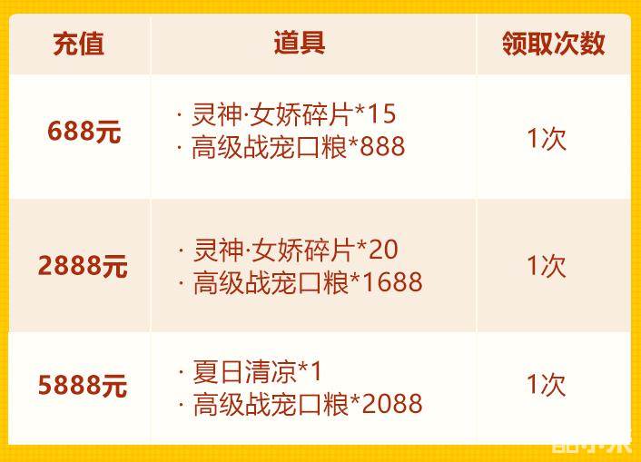 庆灵神·女娇首发!首发活动期间累计金额到达指定档位即可领取灵神·女娇碎片及高级战宠口粮,千万不要错过哟!