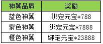 l 活动内容:活动期间内,神翼达到特定等级,将获得额外绑定元宝。