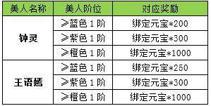 l 活动内容:活动期间内,拥有钟灵和王语嫣,且提升至目标品阶则可领取奖励。