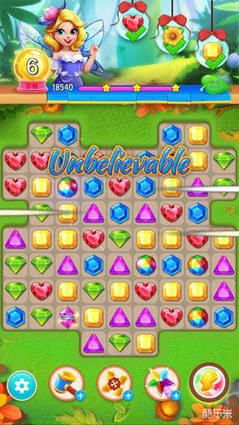 此外,游戏音乐也是欢快轻松,在消除的瞬间还会有专门的特效和音效,伴随着小仙女莉莉good、great、 unbelievable、bonus time等的加油喝彩声,能让玩家不由自主洋溢出开心的笑容。