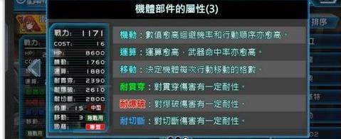 COST: 珍贵度愈高的机体cost愈高(感觉无卵用)