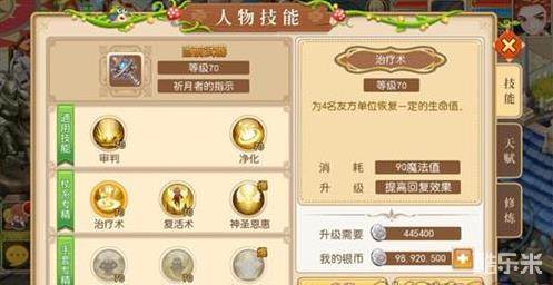 神圣恩惠:爆发技能,消耗怒气释放。复活所有友方倒地单位,并恢复全体友方单位一定的生命值。