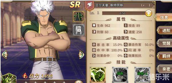 在妖精的尾巴无尽冒险中艾尔夫曼是一个防御类型的角色。不会主动去攻击,以防御为主。艾尔夫曼的属性生命值962,攻击89,防御60,速度258,暴击率达到15%,暴击伤害50%,命中率100%,闪避率,效果命中以及效果抵抗均是0。刚刚获得的魔导士就有这样的属性,可以看出艾尔夫曼这个角色还是很不错的。