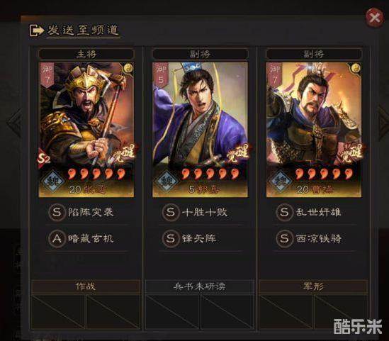 推荐张辽带裸衣和鬼神,郭嘉横戈和锋失,曹操铁骑和西凉。1.2回合结束战斗,打34吕跟玩泥巴一样,任何版本34吕随便虐。张辽有接近100增伤以及25会心翻倍伤害,连击在手,一回合带走主将小意思。