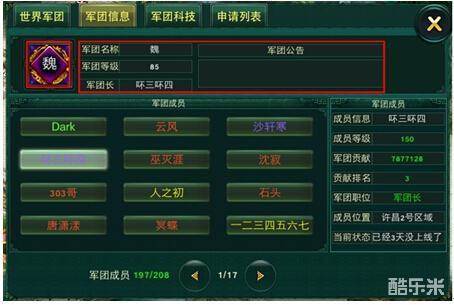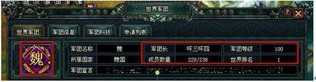 【活动规则】:军团的军团宣言中分别带有“吴”“蜀”“魏”等字样且军团等级达到15级人数≥40人且军团世界排名前20,参加活动的军团需军团长以截图(参照示例图)的形式并且根据跟帖格式在论坛活动专帖跟帖即可,如在活动期间内没有在活动专帖跟帖视为没有参加活动。