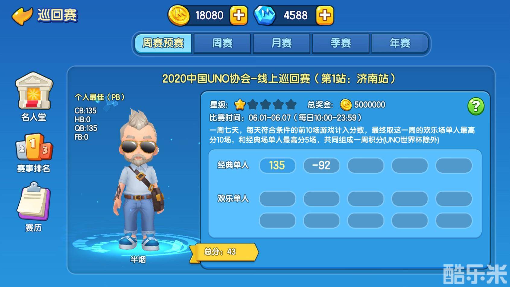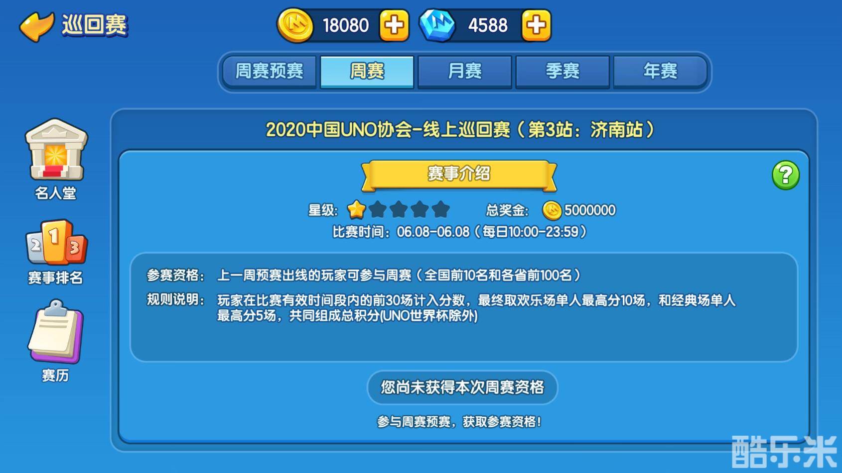 UNO线上巡回赛还设有UNO名人堂,现虚位以待,你能成功登上名人堂嘛?