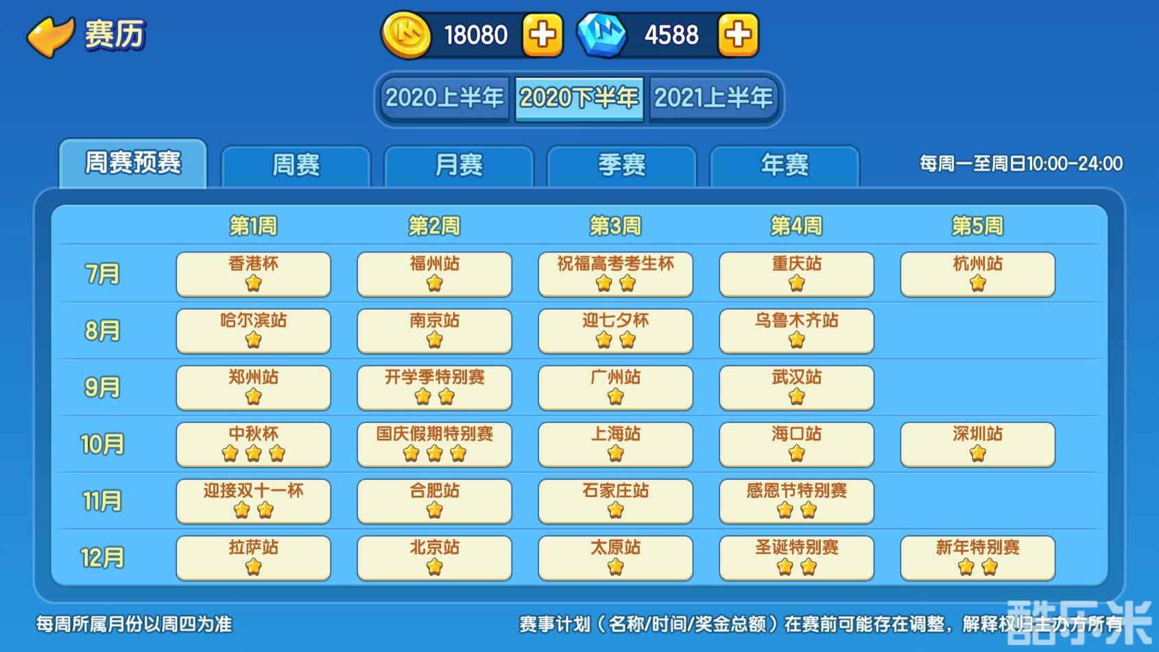比赛层层晋级,奖励蹭蹭提升。月赛1500万金币奖励,季赛2000万金币奖励,年赛5000万金币奖励,全年累计奖励达6亿,超多比赛机会,还不快来瓜分金币!