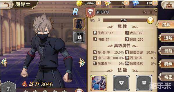 在妖精的尾巴无尽冒险中,多班卡尔的属性生命值是1577,防御74,速度250,攻击363,暴击率达到15%,暴击伤害50%,命中率100%,闪避率,效果命中以及效果抵抗均是0。