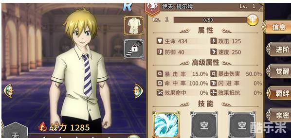 在妖精的尾巴无尽冒险中伊夫是一个辅助类型的角色。伊夫属性生命值434,防御125,其中,高级属性中暴击率达到15%,暴击伤害50%,命中率100%,闪避率,效果命中以及效果抵抗均是0。在游戏中,不断增加经验,便可以让角色变得更强大。
