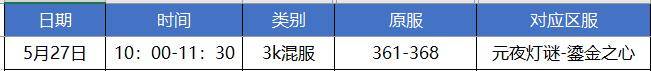合服时间:5月27日10:00-11:30(开服时间可能会根据实际情况顺延)