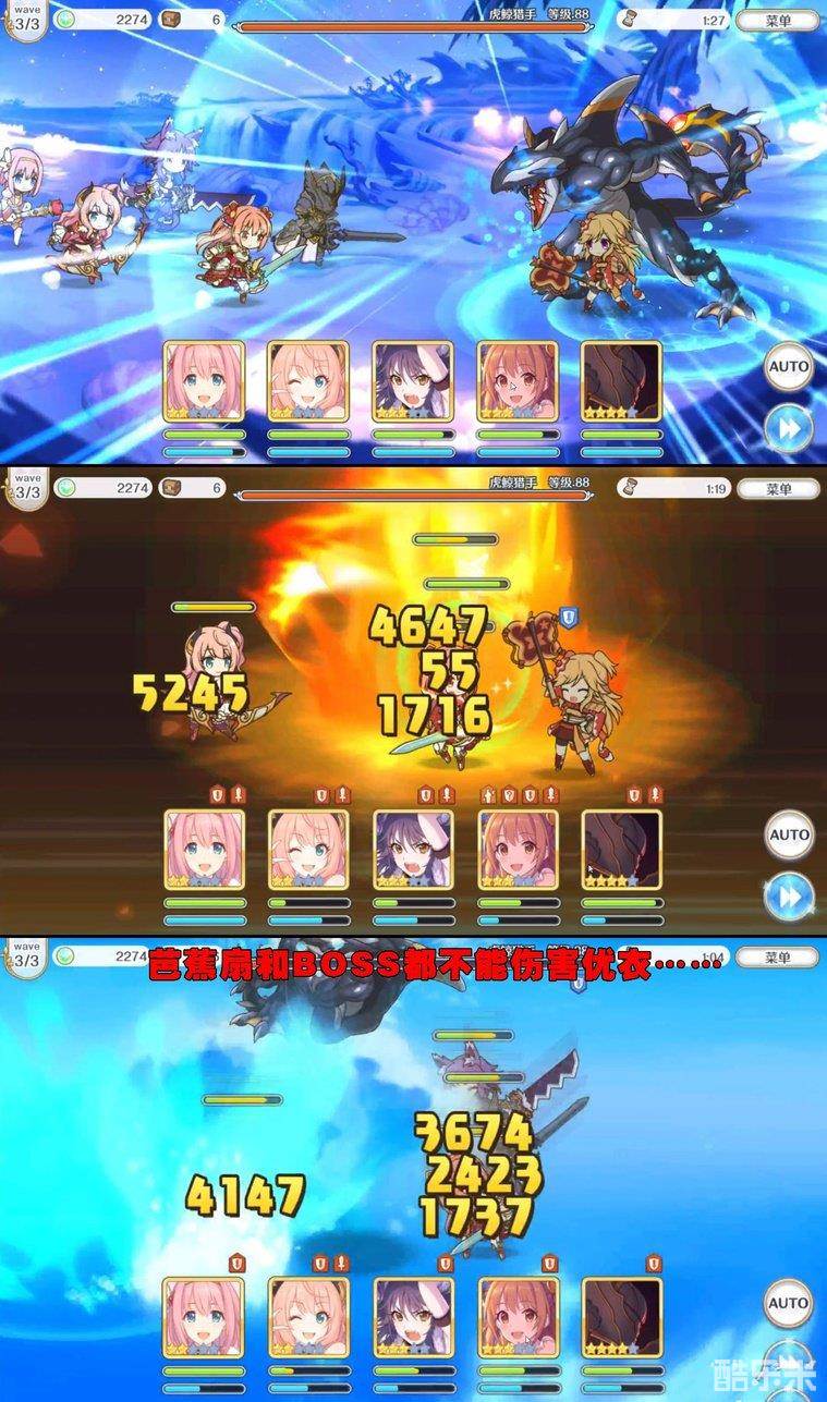 第三面:BOSS配合芭蕉扇,如果伤害够高的话,可以直接打出秒杀的效果,芭蕉扇UB可能都开不出来就死了……BOSS的四浪攻击伤害很高,也不足以秒人,让优衣保持回血即可顺利通关。
