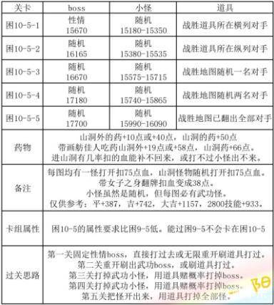 2、当然属性不是优先升武功也不是绝对过不去,属性不够,肝和运气来凑。可以赌一下每个小关的道具都恰好把boss打掉,这也不是没有可能的事。