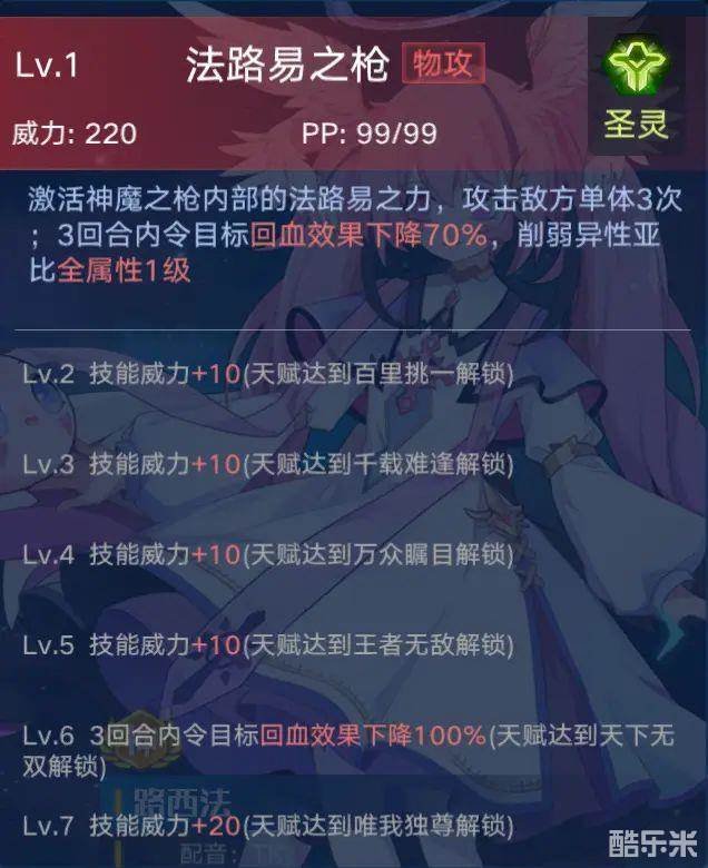 三回合的控制回复血量’LV6百分百禁疗率’,异性亚比减全属性一级。
