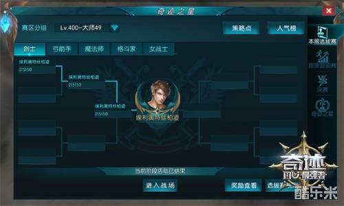 选拔赛直接刷掉99.999%的玩家,只有前一、二名玩家可进入晋级赛。要知道高考时全国985院校的平均录取率也有2%,奇迹之星选拔赛可是比考中985院校还难的事哦(玩笑)!虽然是尖子生中的尖子比试,但是相较于最强战队玩法,奇迹之星根据玩家职业划分为剑士、弓箭手、魔法师、格斗家、女战士五大类别。术业有专攻,不用有高考偏科的困扰,奇迹之星纯粹看个人实力。