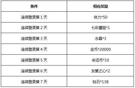 活动内容:活动期间内,每日登录游戏,即可在邮箱中领取:体力*150、七彩盾菇*5、魔法日记*4、金币*30000哦~