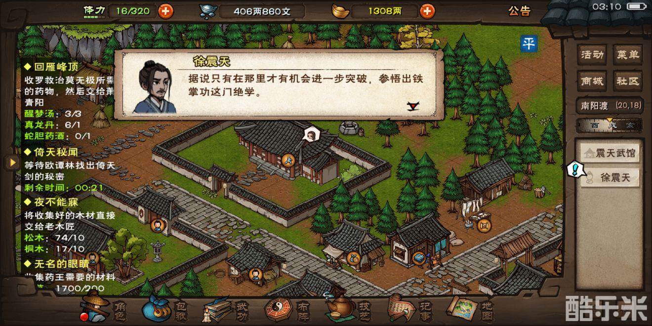 首先玩家们要去毓秀山庄(26,15)这个位置来触发任务,之后玩家们去找陈师傅打听掌印,随后去南阳渡的武馆,找徐震天打听铁砂掌,在他那里买壮骨酒不要忘记了,之后练习铁砂掌是要用上的,最后给五百文就能学习铁砂掌了。