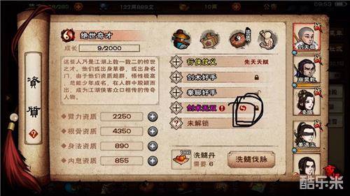 玩家们首先要准备好800个洗髓丹,如果你觉得自己的运气还算可以就不用准备这么多了,另外先天天赋不要去加,我们需要开出三条天赋后才能进行换置,而且两条还只能换一次,如果你开出两条天赋也获得了紫脉。