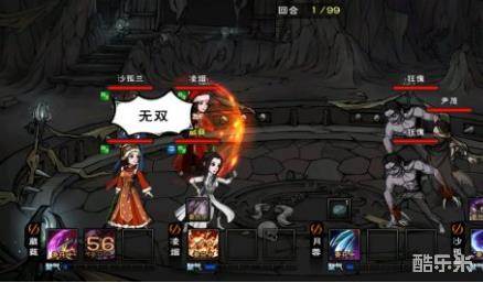 在上面、下面分别有两个狂傀,外加一个尹茂,第二回合的时候他会用九天落星进行全屏的攻击。