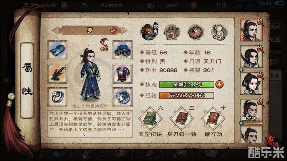 双王镇(15.33)洪钧 七杀刀法(进阶)、逸影袍(时装)