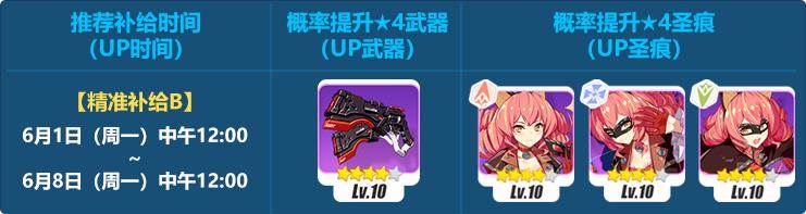 2)每十回精准补给内必出一件★4武器或★4圣痕。