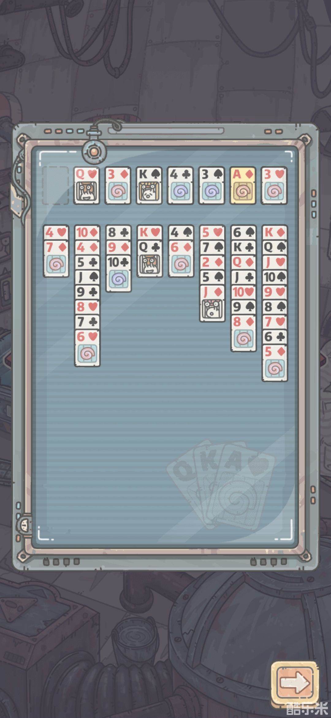 这个游戏是把右上角四个空位,根据同个花色A—K把下面的牌吸到上面接龙。