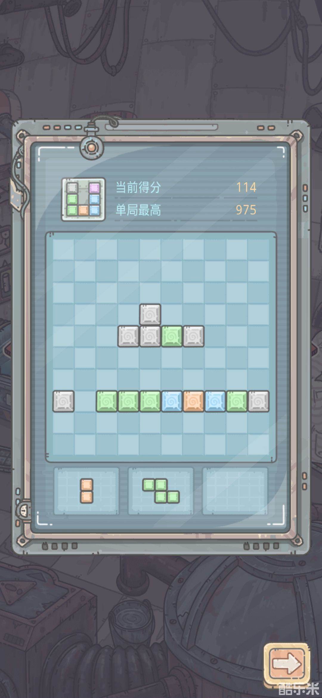 俄罗斯方块的玩法,只是方块不会自动掉下去,要注意及时消除,多留空位,后面的方块都是偏大块的。奖励是探险加速。