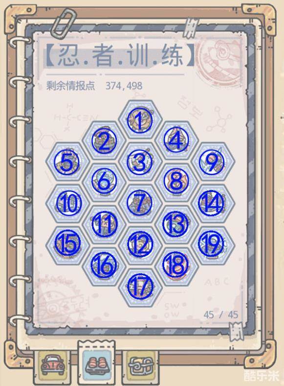 1-3-4-7-2-5-12-1-3-8-10-15-17-11-13-14开完全部图可以优先把奖励格提升了,然后在开始点忍法,点完就去忍者训练那边把修炼速度加起来(忍法的训练是扶桑中最耗时间的一项)