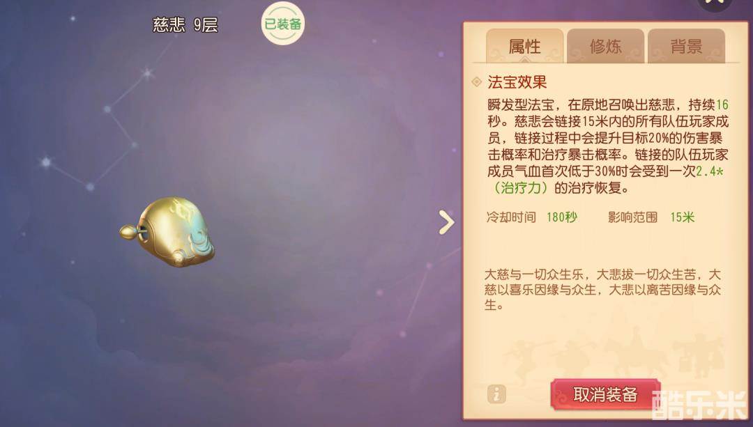 在这里我先说下化生门派法宝慈悲效果。