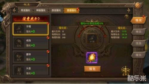 1. 可通过消耗指定材料对雷霆装备进行强化,提升基础属性