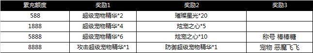 活动内容:活动期间累计充值达到对应档次即可领取相应好礼,不要错过哦~