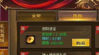 点数商城上架招财进宝道具,使用后可开启金蟾宝藏抽奖,每天限购100个。每使用一个招财进宝将增加大量修为经验。