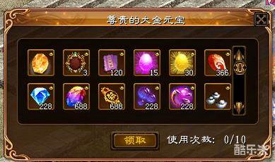 使用10个尊贵的大金元宝将额外获赠一个尊贵的大金元宝(六一欢乐版)。