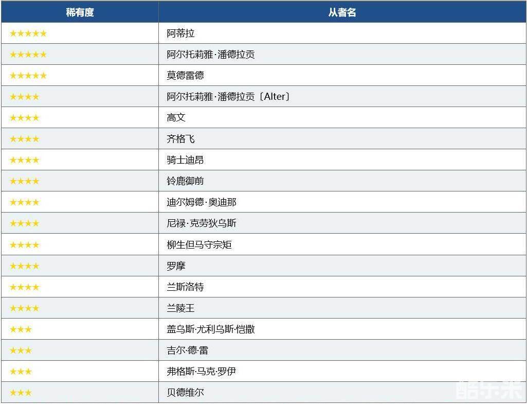 ※无法召唤限定从者,敬请注意。