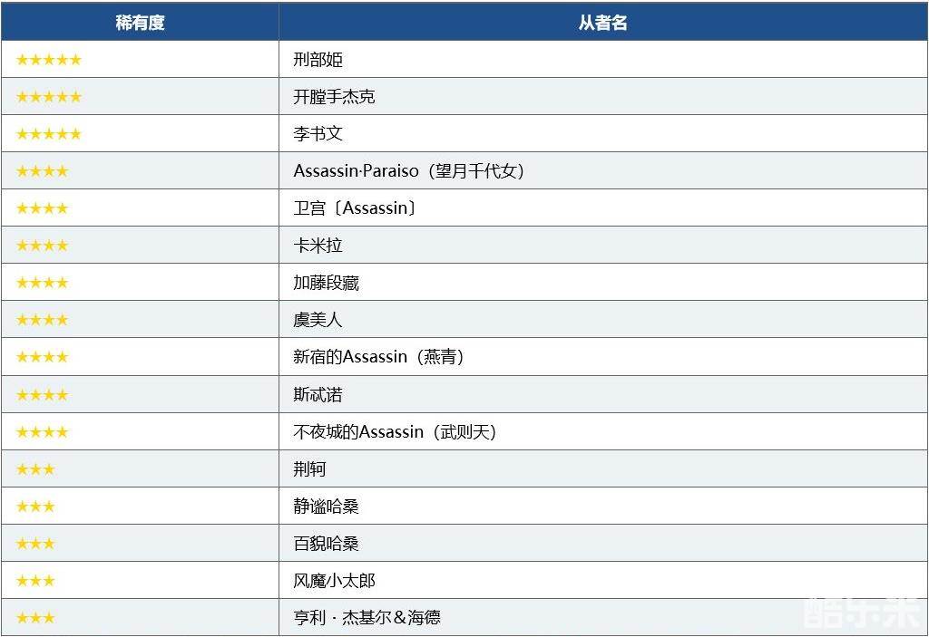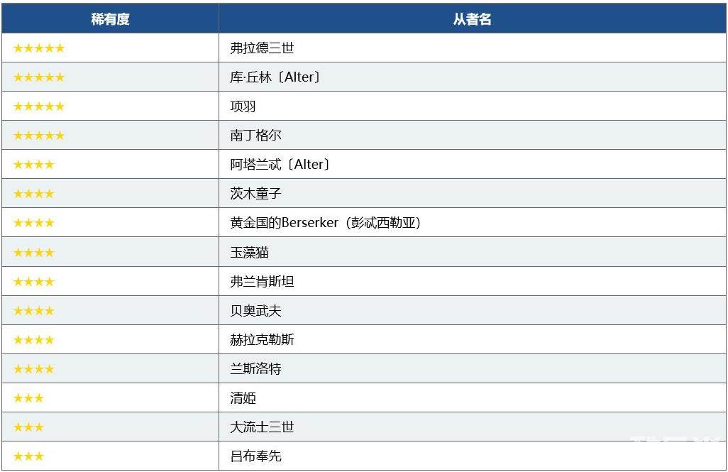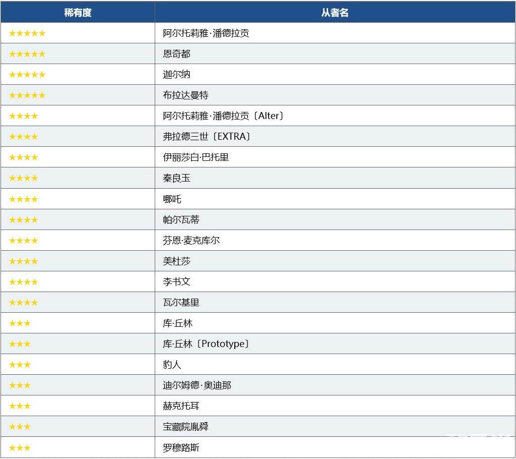 ※召唤对象中也包含★3(R)从者。