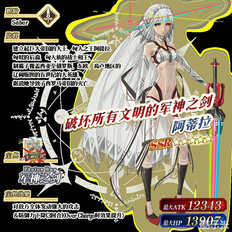 ※以上的「★5(SSR)阿蒂拉(Saber)」的立绘为灵基再临第2阶段。