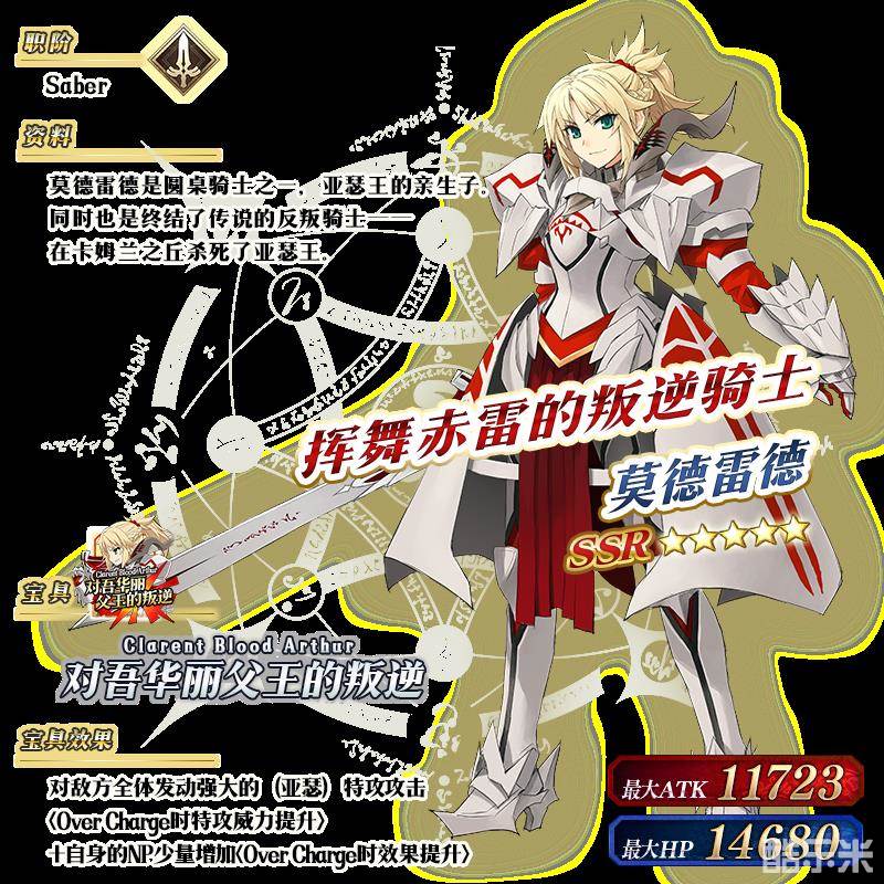 ※以上的「★5(SSR)莫德雷德(Saber)」的立绘为灵基再临第2阶段。
