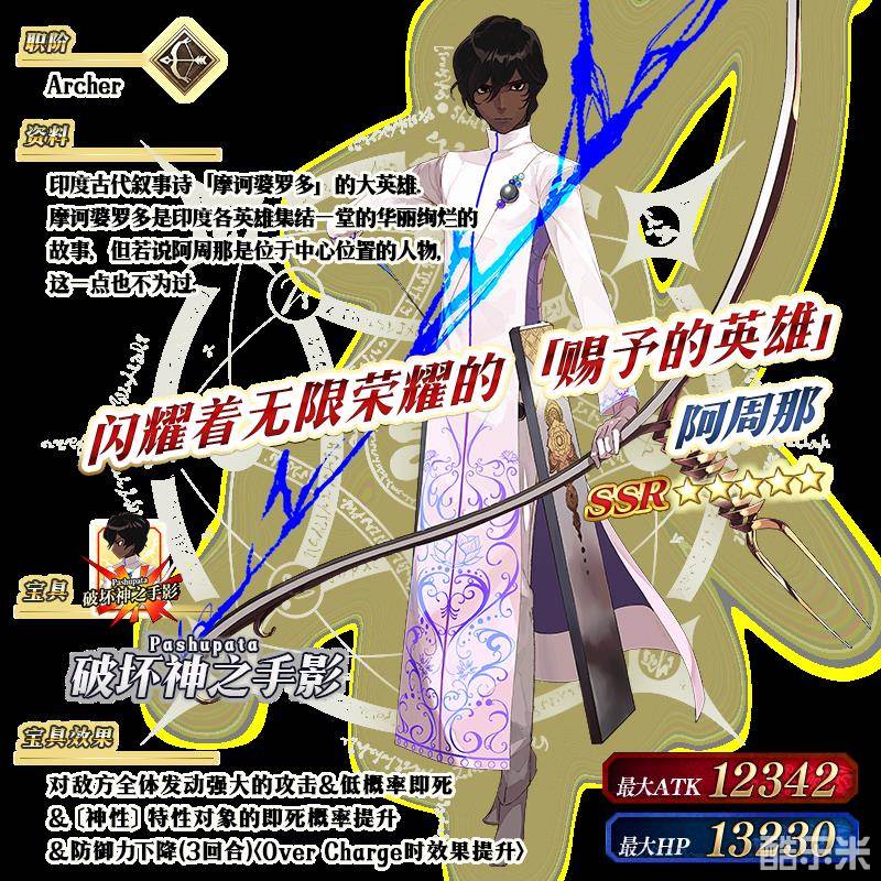 ※以上的「★5(SSR)阿周那」的立绘为灵基再临第2阶段。