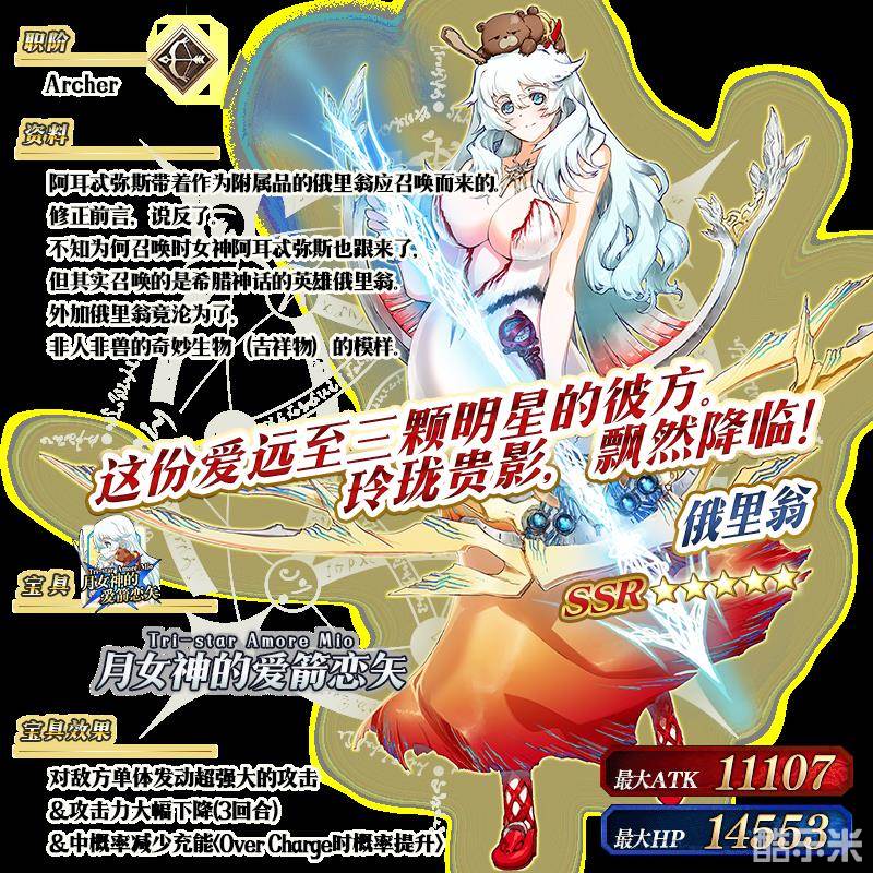 ※以上的「★5(SSR)俄里翁」的立绘为灵基再临第2阶段。