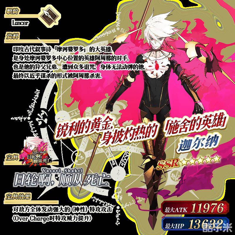 ※以上的「★5(SSR)迦尔纳」的立绘为灵基再临第2阶段。