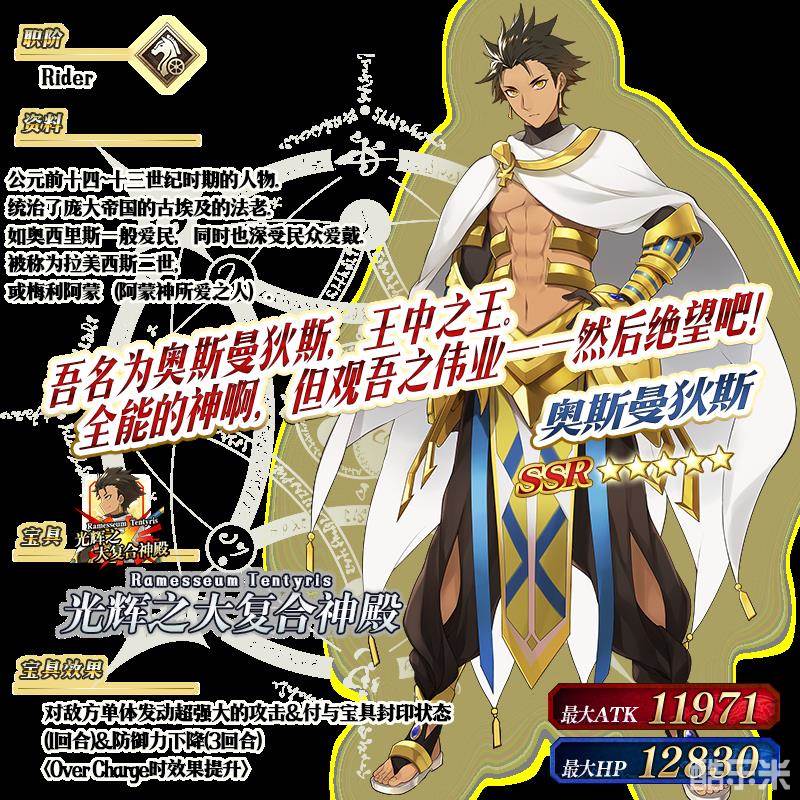 ※以上的「★5(SSR)奥斯曼狄斯」的立绘为灵基再临第2阶段。