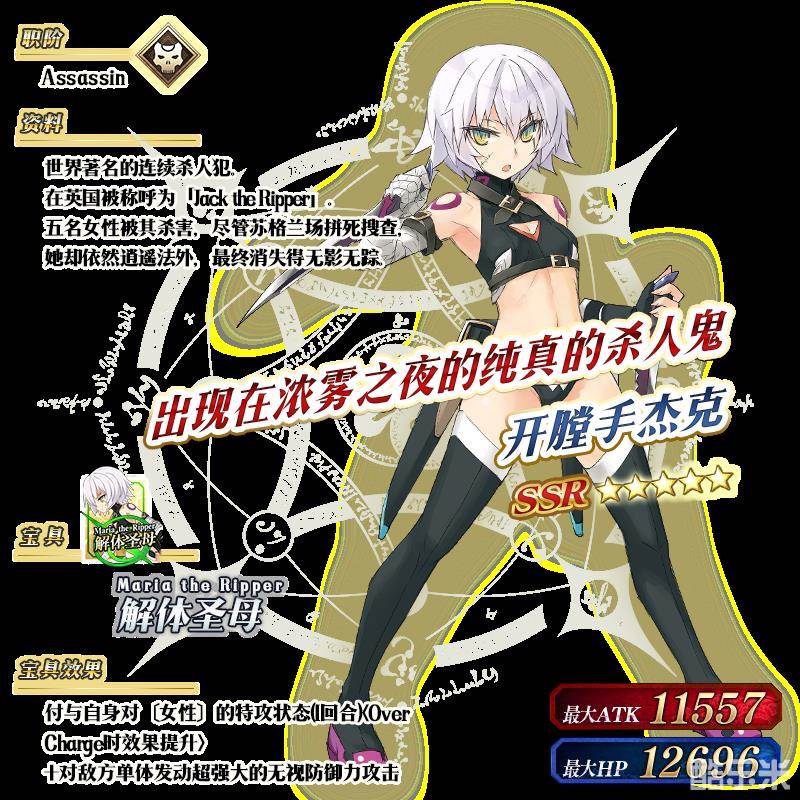 ※以上的「★5(SSR)开膛手杰克」的立绘为灵基再临第2阶段。