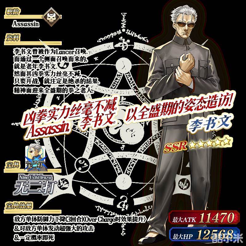 ※以上的「★5(SSR)李书文(Assassin)」的立绘为灵基再临第2阶段。